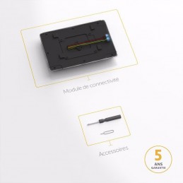 Grâce à ce module de connectivité pour visiophones Somfy V®350, V®500 ou V®500 PRO io, il est maintenant possible de les connecter en fixant ce module de connectivité au dos du moniteur intérieur.