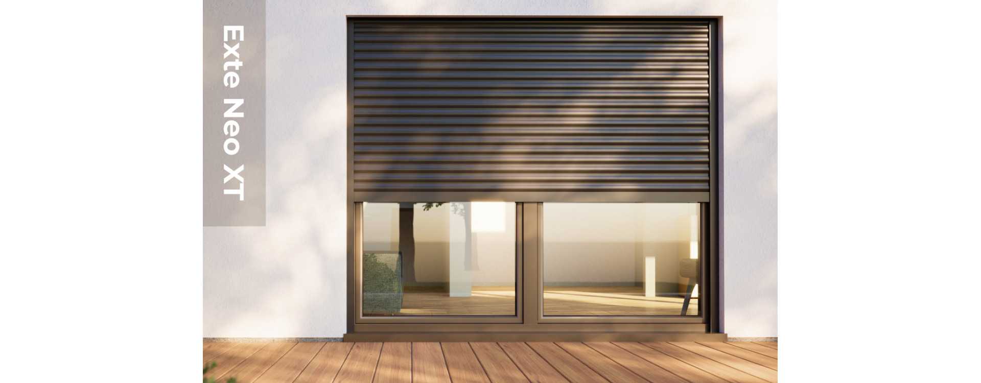 Le volet roulant Exte Neo XT a été conçu pour les clients qui apprécient la possibilité de contrôler la quantité de lumière qui pénètre dans leur maison. Ce système est disponible en deux versions avec trappe de visite par le bas intérieur et extérieur.