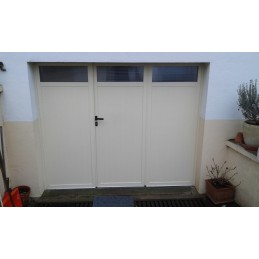 Porte Ouvrant à la Française – PVC Standard Manuelle✔ Tablier en lames verticales clippées divisées en 2 parties de 2 panneaux✔ Portillon intégré au panneau central, sans hublots rectangulaires✔ Serrure sécurisée avec 3 clés plates (trou de serrure non percé)✔ Charnières rivées aux broches pour une solidité renforcée✔ Dimensions : Largeur 2400 mm, Hauteur...