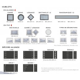 Porte sectionnelle isolante sur mesure avec décorations alunox. Dimensions maxi : Hauteur : 2350 mm et Largeur 3000 mm. Plusieurs motifs et aspects, couleurs et finitions au choix, manœuvre motorisée possible. Livraison inclus en France. Télécharger : DOSSIER TECHNIQUE | BROCHURE | NOTICE