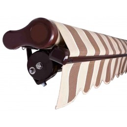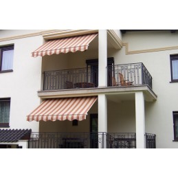 Store banne extérieur semi coffre. Largeur possible jusque 7.2 m, déploiement possible jusque 4 m. Fixation mural ou plafond ou sous toiture. Manœuvre manuelle ou électrique. Produit sur mesure garantie 7 ans. Livraison chez vous entre 4 et 6 semaines.